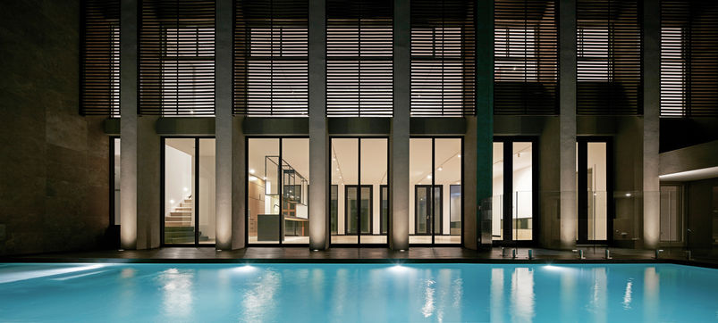 Internally, our design played with dramatic contrasts between solid and void along with changes in volume and height to create visual interest throughout. Indoor/outdoor spaces were designed to be flexible with varying degrees of privacy. Interior living areas are oriented towards a horizon-edge white-tiled swimming pool that traces the perimeter of the site.